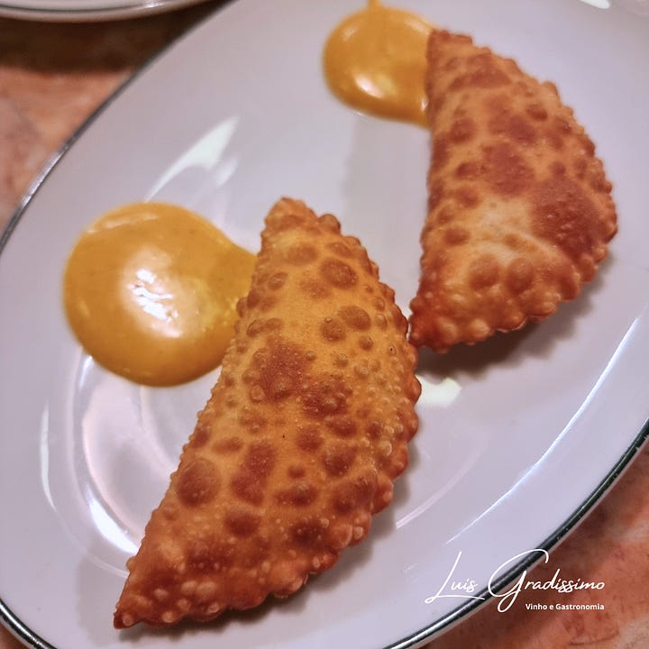 Fiquei também muito curioso com o Pastel de Perdiz, feitos de massa tenra, bem recheados, com uma maionese muito saborosa, agridoce, uma escolha segura.
