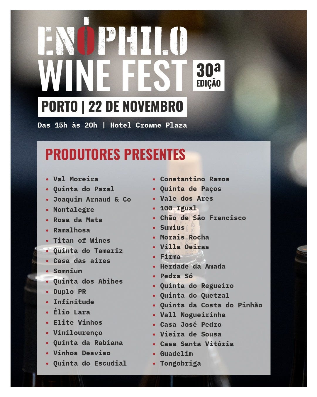 E como referi, e para celebrar as 30 edições, temos novidades! Farei uma publicação específica para falar desta novidade em detalhe, mas fica já a nota de que o Enóphilo Wine Fest 2025 Porto terá um pop-up dinner, ou seja, um jantar de carácter único e irrepetível, que irá decorrer na casa do produtor dos vinhos Sem Igual, após o encerramento do evento.