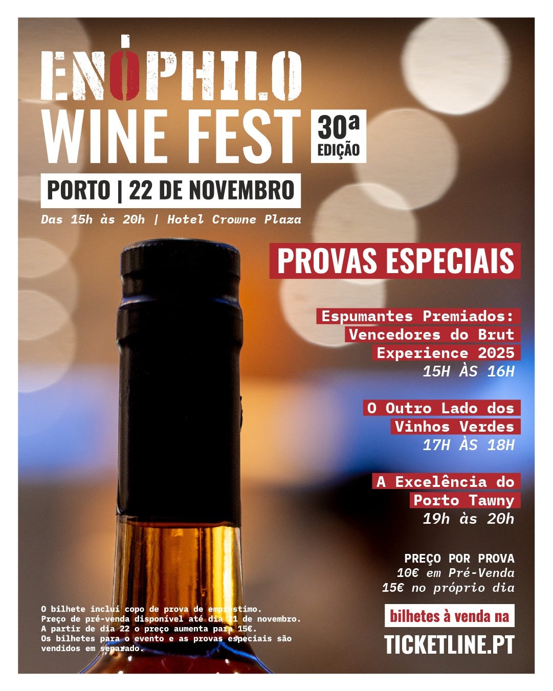 Todos os bilhetes estão disponíveis na Ticketline, e alguns deles já estão prestes a esgotar. Enóphilo Wine Fest, um evento para quem gosta de Vinho!